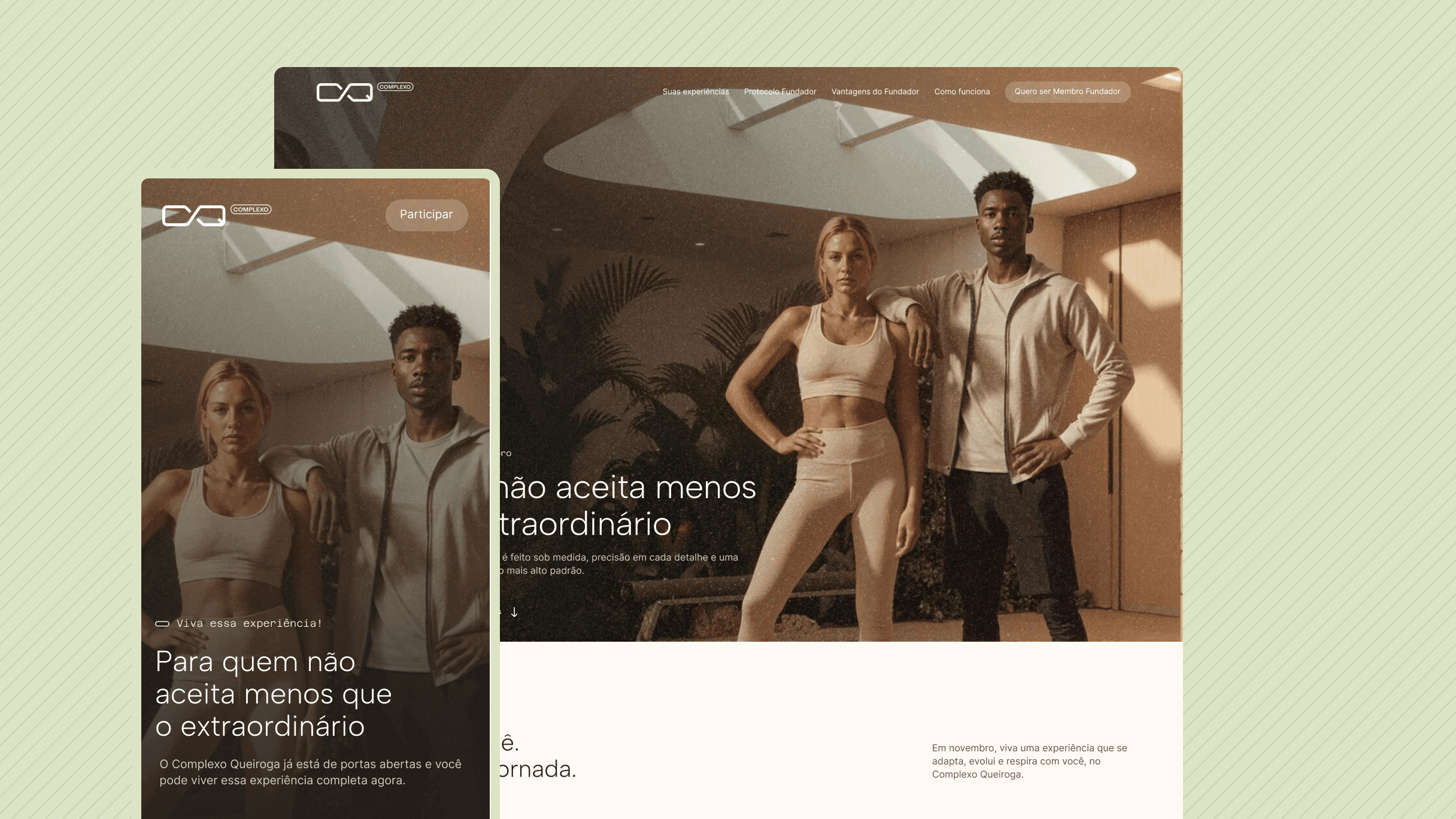 Construção estratégica de marca, com aplicação completa, pré-venda, redes sociais e site, pensado para sustentar posicionamento e presença em todos os pontos de contato.
